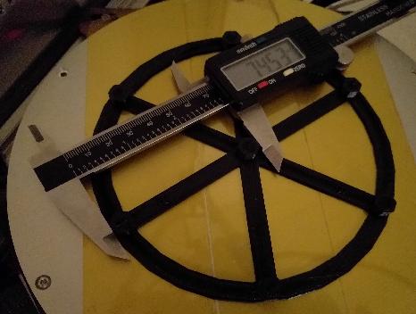 Use a slicer to generate G-Code from the docs/prints/calibrate_size.stl file. Slice the object using a slow speed (eg, 40mm/s). If possible, use a stiff plastic (such as PLA) for the object. The object has a diameter of 140mm. If this is too large for the printer then one can scale it down (but be sure to uniformly scale both the X and Y axes). If the printer supports significantly larger prints then this object can also be increased in size. A larger size can improve the measurement accuracy, but good print adhesion is more important than a larger print size.